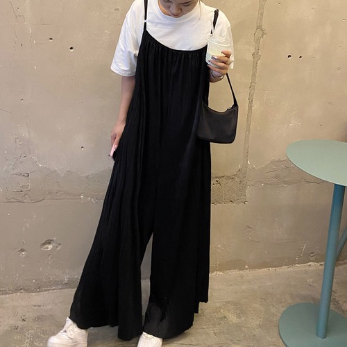 【日本倉庫即納】 プリーツ キャミサロペット ロングパンツ