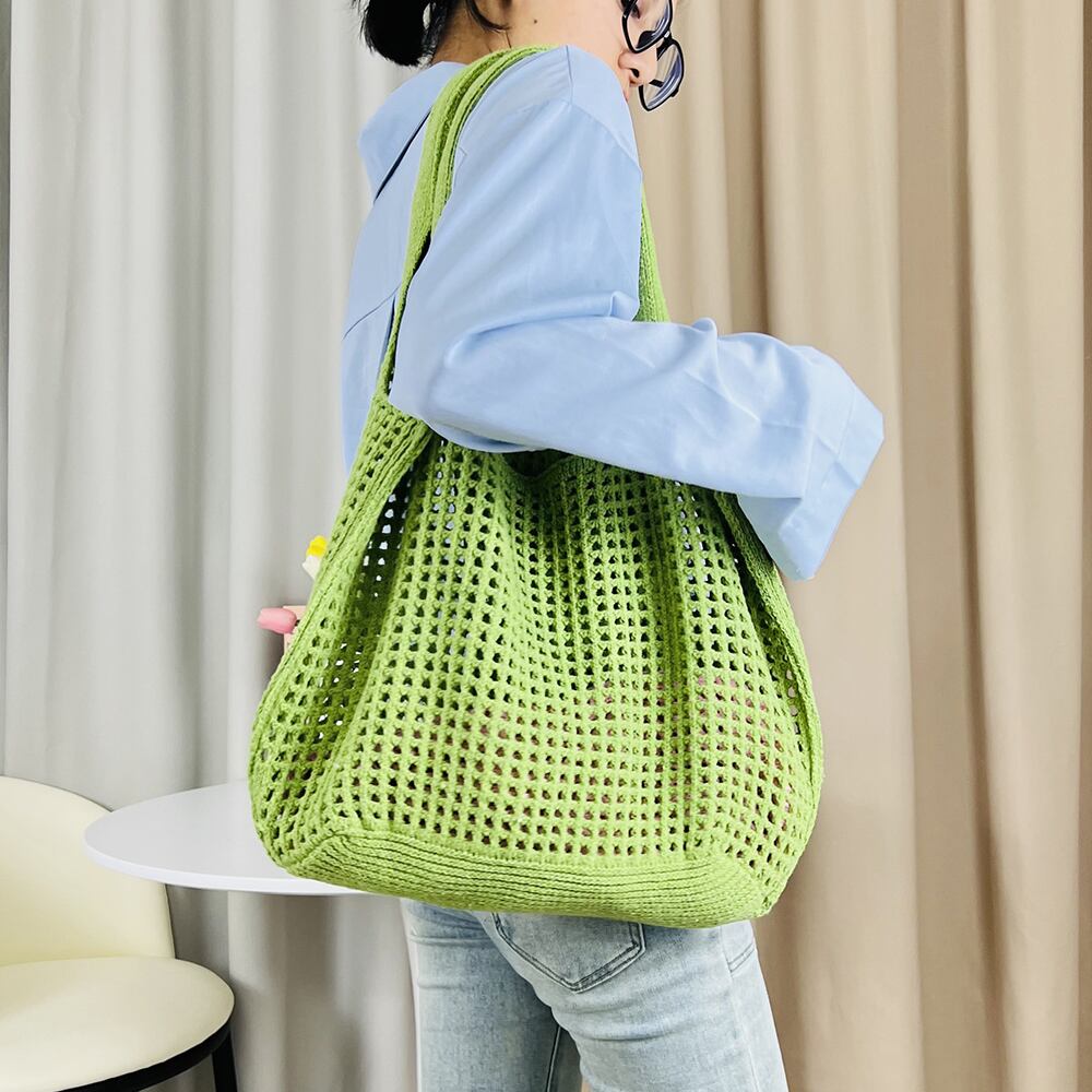 レディース クロシェ編み 肩掛けバッグ a4大容量ビーチバッグ 無地 シンプル ナチュラル 可愛い9色展開 韓国軽量