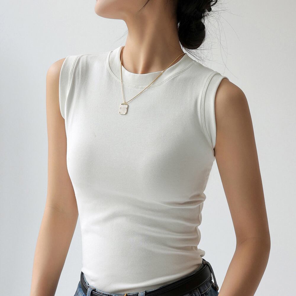 ストレッチ性に優れた生地で1日中快適な着心地のノースリーブトップス。