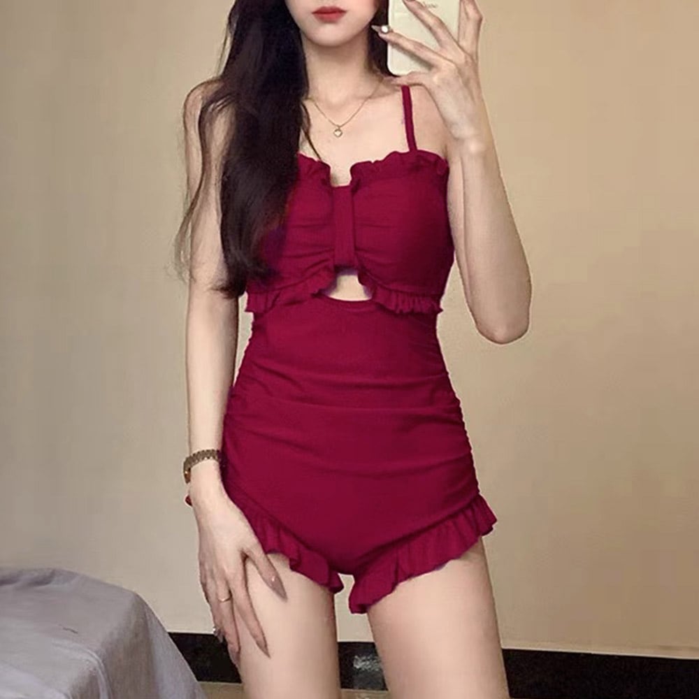 韓国風 スイムウェア リボン 体型カバー 水着 可愛い フリル セクシー クロス ストラップ水着 おしゃれ 水着 20代