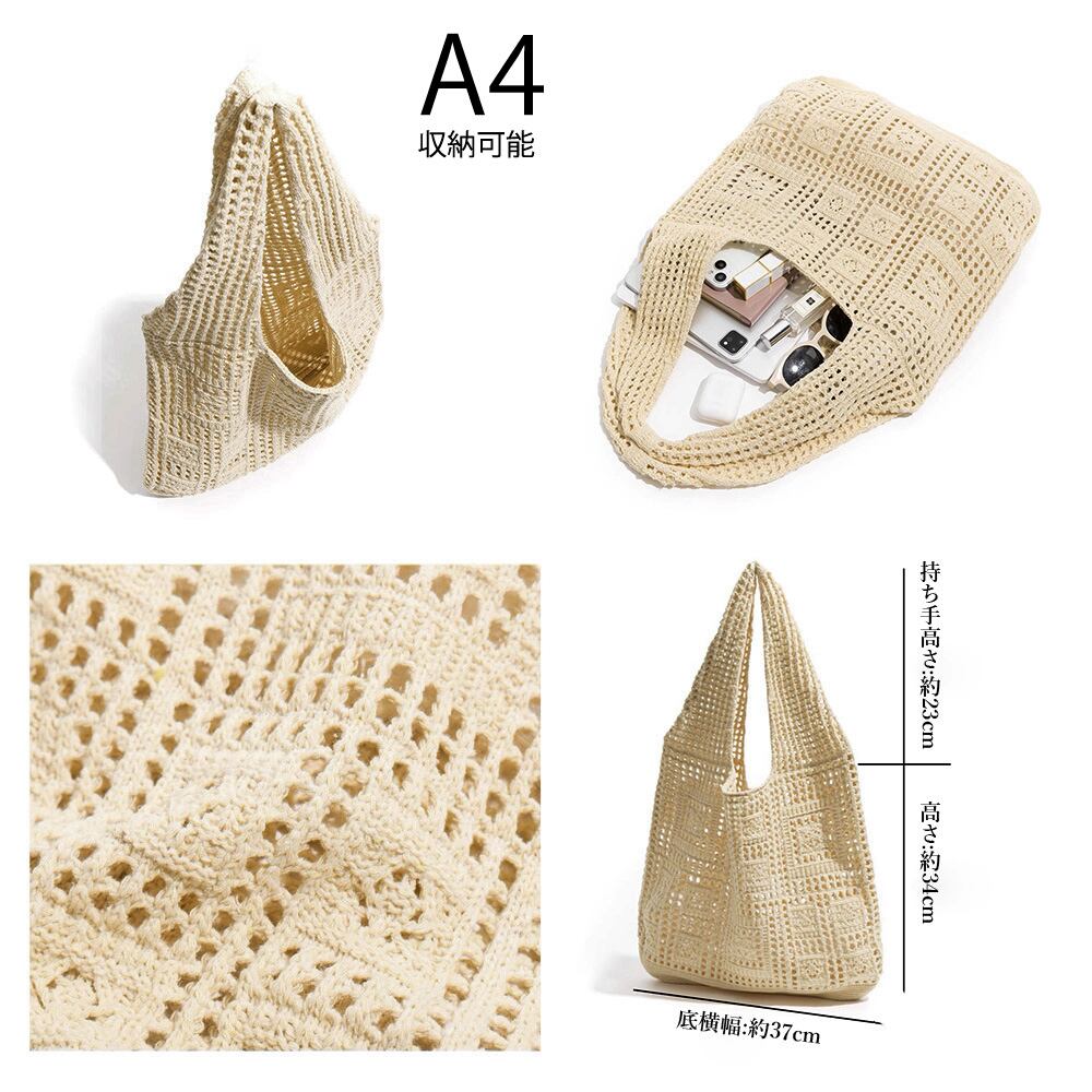 レディース おしゃれ 透かし編みバッグ 軽量 肩掛けバッグ 大容量 a4対応 韓国 ニット編みかばん カジュアル 10色