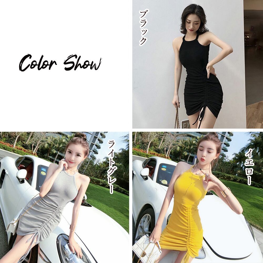 ボディコンワンピ レディース ノースリーブワンピース ドローストリング タイトワンピース 膝上丈 パーティー ミニドレス