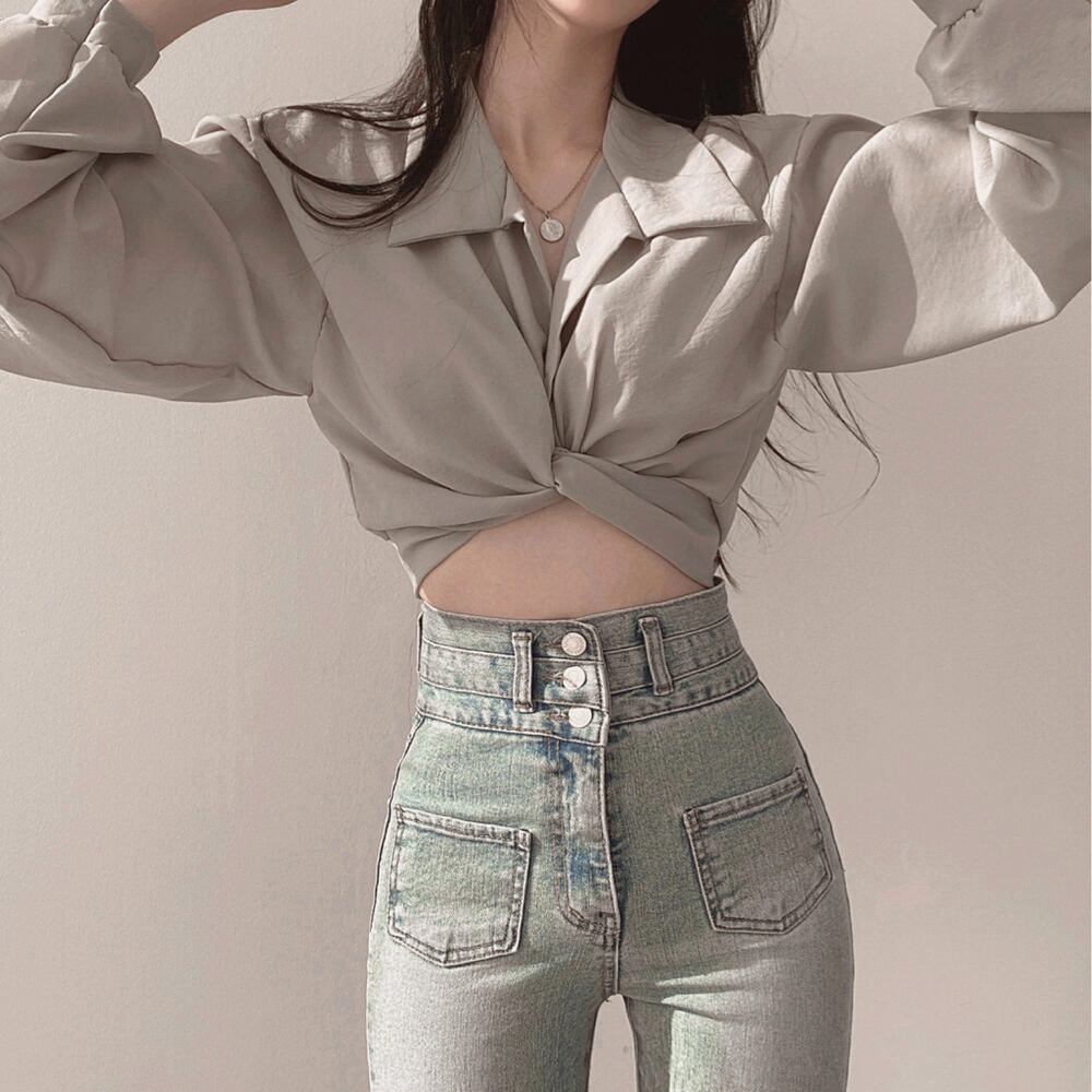 セクシーでかわいいショート丈シャツブラウス