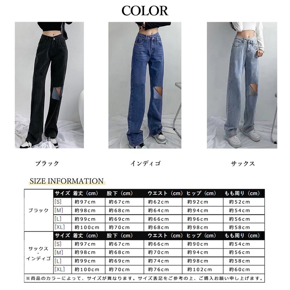 【日本倉庫即納】 韓国風 ダメージデニムパンツ レディース