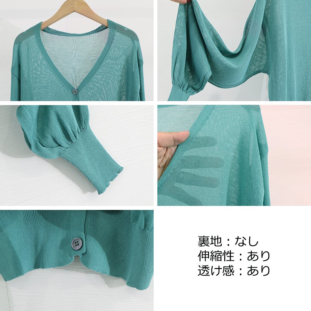 無地カーデアウター ボリューム袖 軽い 涼しげカーディガン