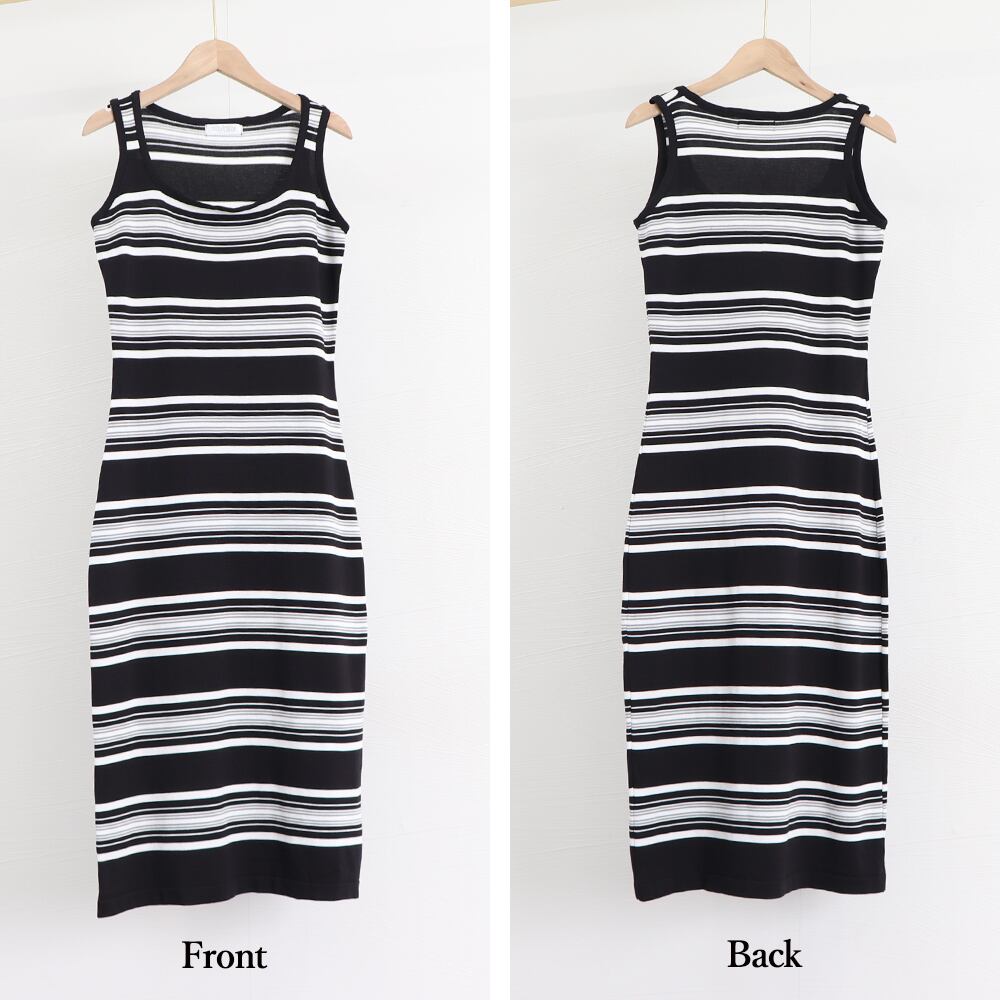 【日本倉庫即納】 ニットワンピース ボーダー柄タンクワンピ