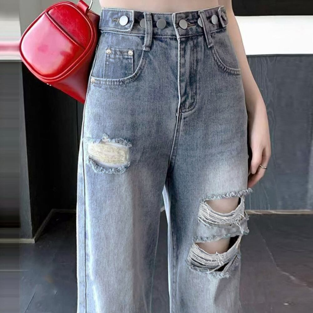 【日本倉庫即納】 ダメージ デニムパンツ レディース着やせ