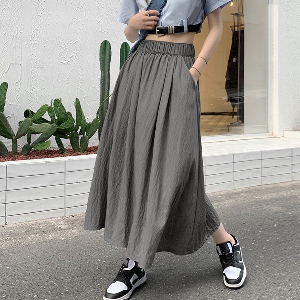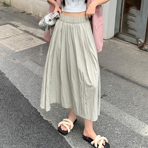 【日本倉庫即納】 薄手ロングスカート ハイウエスト 韓国夏