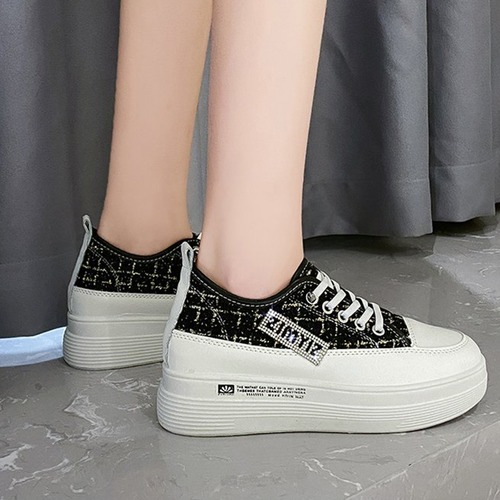【日本倉庫即納】 ツイードスニーカー 厚底シューズ 韓国