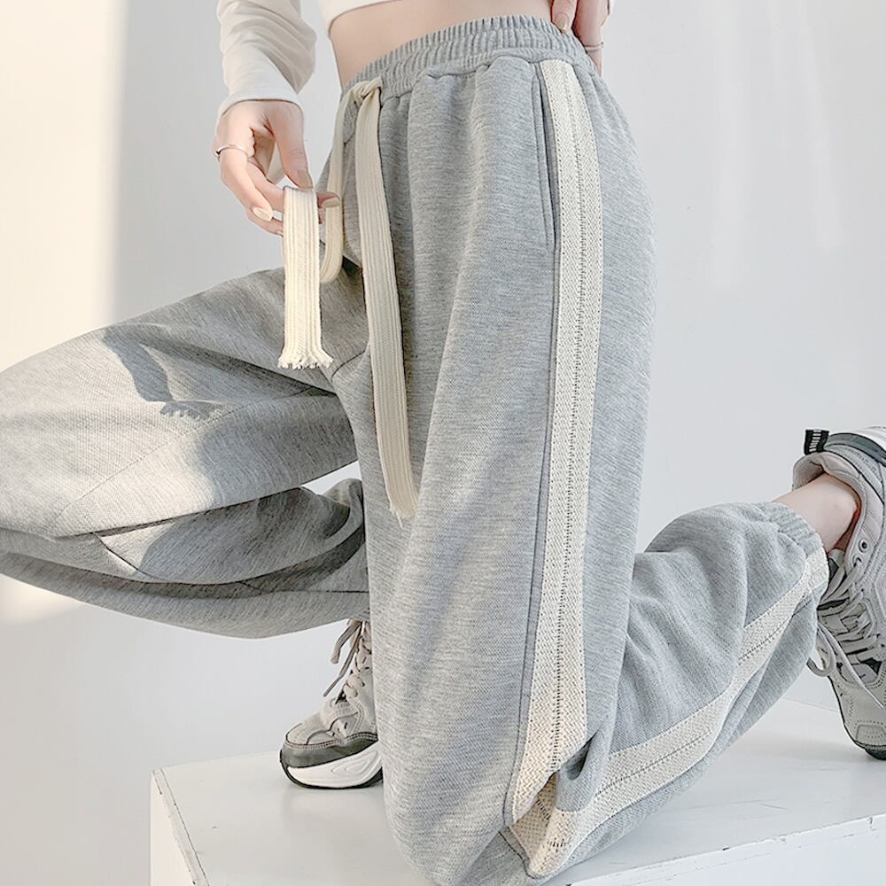 レディースボトムス 韓国風 サイドライン ハイウエストパンツ ウエストゴム 部屋着 運動着 カジュアル ダンス衣装