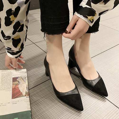 美脚パンプス ミドルヒール 靴 韓国ファッション