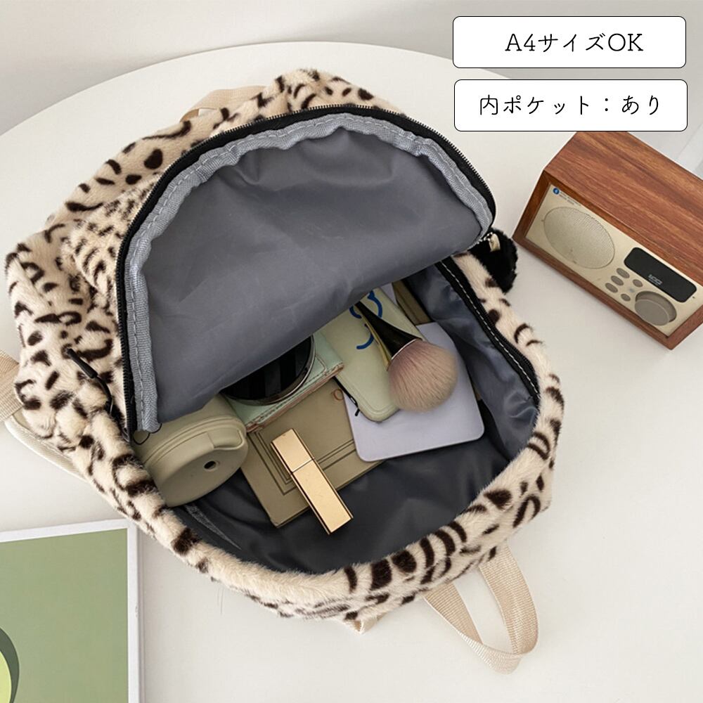 【日本倉庫即納】 リュックサック ヒョウ柄 ふわふわ 通学