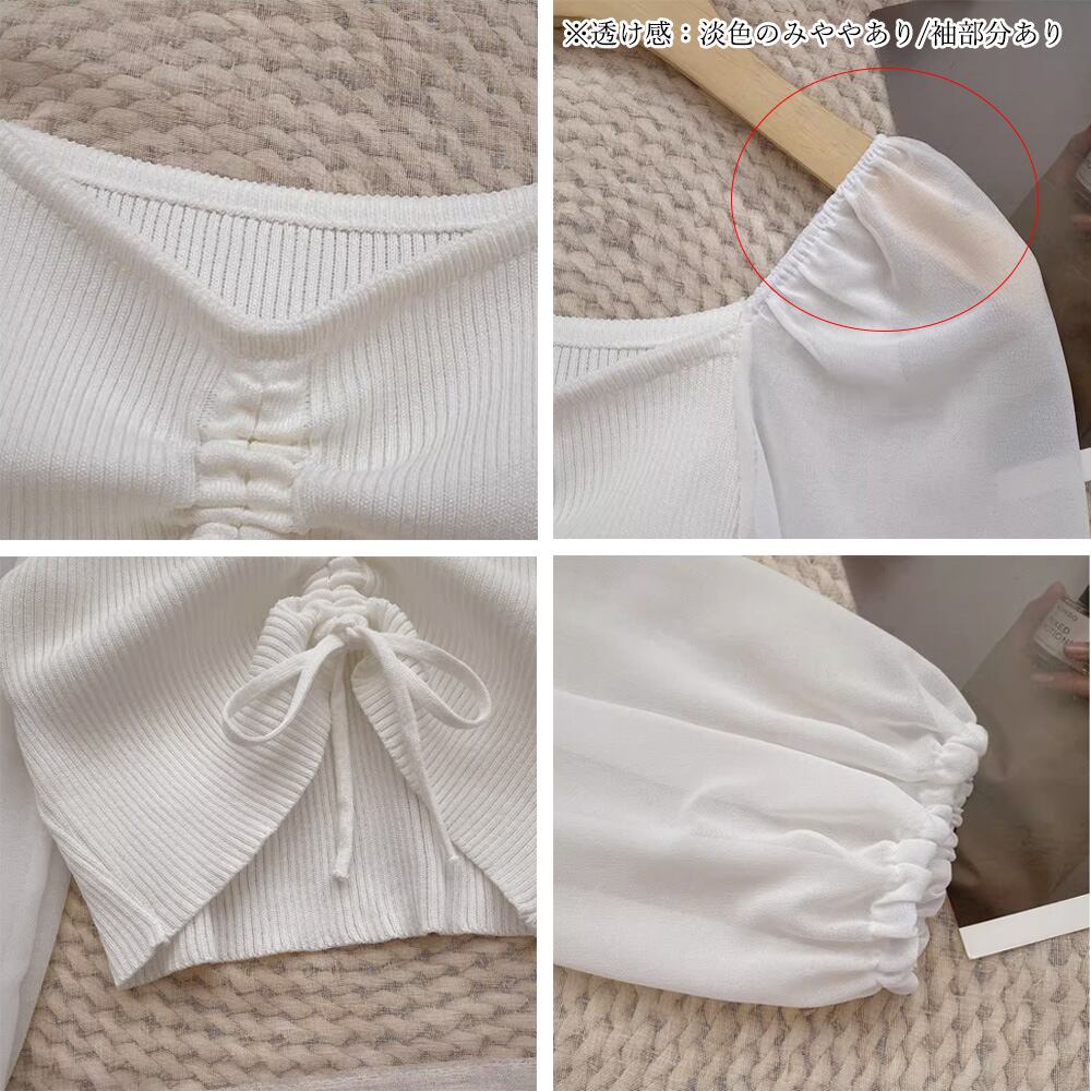 シフォン袖×リブニット素材のMIXデザインでフェミニンな印象を与えてくれるニットトップス