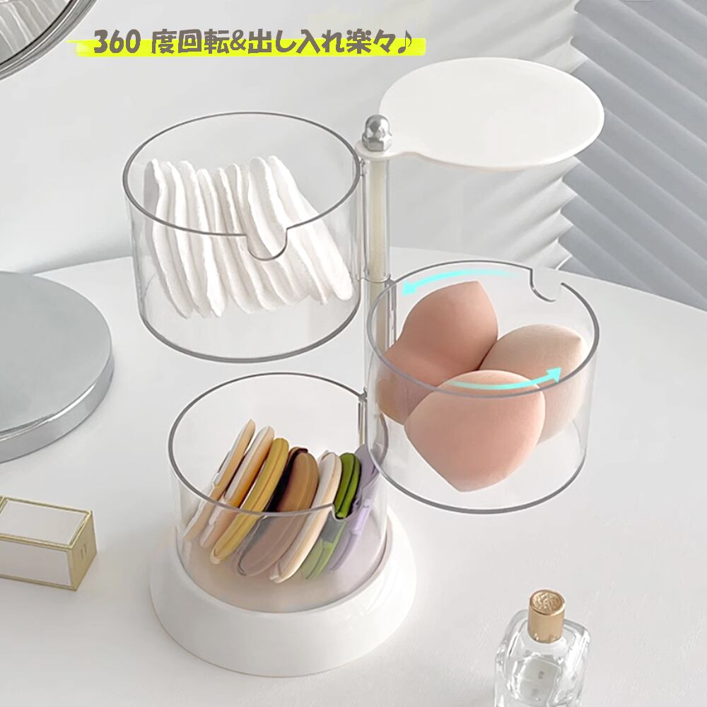 収納トレイ 2段3段4段回転収納ボックス 透明 化粧コットンケース アクセサリー収納ボックス ホワイトお洒落 パフ置き