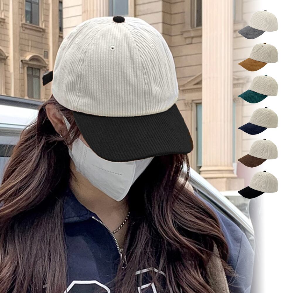 コーデュロイ素材で配色がポイントのキャップです