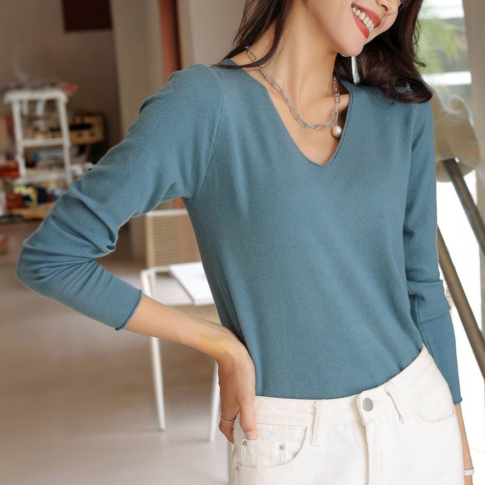 【日本倉庫即納】 無地ニットトップス Vネック レディース